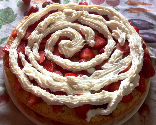 La torta fragole e panna è una vera bontà: golosissima e avvolgente, ricca di fragole e panna come se non ci fosse un domani che servono a farcire un morbido pan di Spagna; a completare la decorazione delle stelline zuccherate di pasta sfoglia… Questa torta l’ho preparata per il compleanno di Viola, una bimba di due anni a cui i genitori han fatto bene a dare questo nome: è proprio un tenero fiorellino. Ne ho approfittato per arricchire il repertorio di torte che si possono realizzare per i compleanni… Se volete seguirmi vedrete che non è difficile realizzare questa torta scenografica e relativamente semplice…