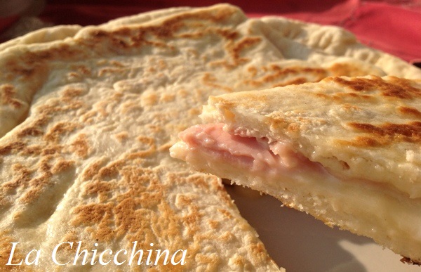 Vincendo un po’ di diffidenza e cedendo alla curiosità, ho deciso di provare la focaccia in padella: una focaccia che si realizza in non più di 15 minuti che, da alcuni tempi, sta impazzando nel web. HO DOVUTO RICREDERMI ALLA GRANDE: è davvero una bontà, si può farcire in mille modi ed è perfetta per un aperitivo, una merenda golosa o quando arrivano tra capo e collo ospiti inaspettati (graditissimi eh?!). Per la base occorrono pochissimi semplici ingredienti e le farce possono essere tantissime: salumi vari (prosciutto, salame, speck ecc…), formaggi morbidi tipo scamorza, mozzarella, gorgorzola (io una toma imperiale, per rendere onore ai fantastici formaggi piemontesi). Naturalmente anche carciofini e funghetti sott’olio aggiungono un tocco di sapore. Io, dicevo, ho scelto la toma imperiale, un formaggio dolce a pasta molle e prosciutto cotto. Il risultato è stato una focaccia golosissima, cotta perfettamente, che è piaciuta proprio a tutti!