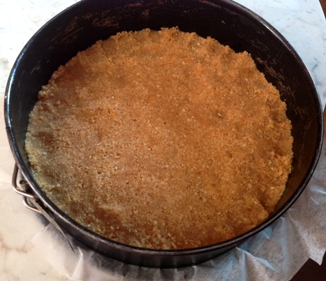 Preparazione: per prima cosa ridurre i biscotti in polvere con il mixer e aggiungere a filo, senza smettere di lavorare, il burro fuso.Rivestire uno stampo a cerniera con la carta forno: con il composto di burro e biscotti creare la base premendo bene con l’aiuto di un cucchiaio.