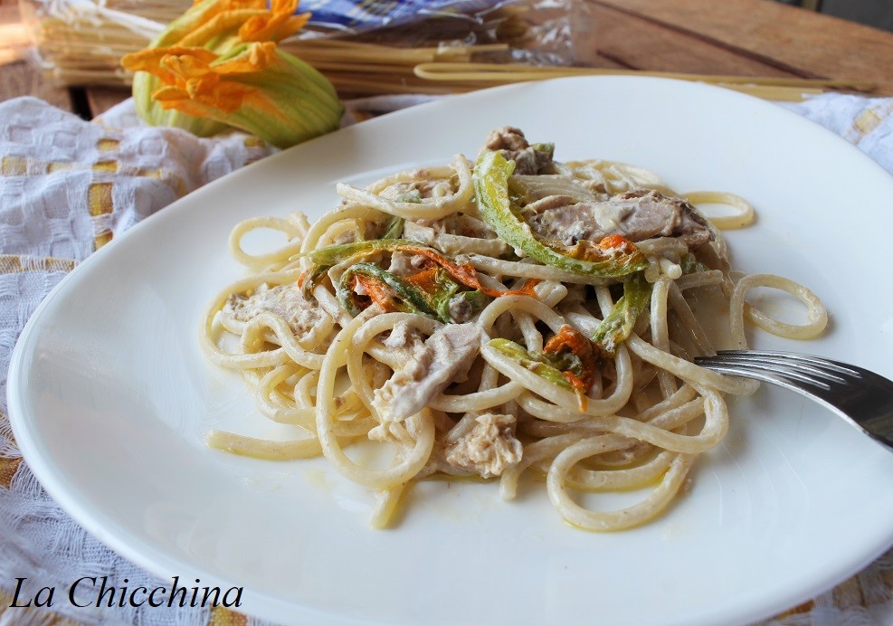 SPAGHETTI CON FIORI DI ZUCCA E TONNO