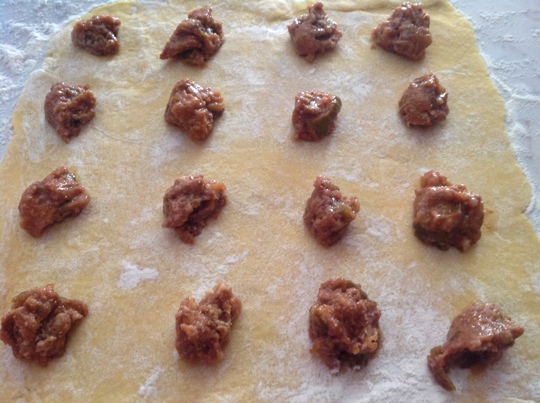 Preparazione: per prima cosa lavare bene i fichi, staccare il picciolo ed affettarli; farli cuocere per circa dieci minuti (fino a che, cioè, assumono una consistenza sciropposa) con due cucchiai di zucchero, la scorza di limone e la cannella.Farli poi raffreddare ed aggiungere i biscotti ridotti in briciole.Preparare ora “l’involucro” mescolando la farina con il burro, lo zucchero, le uova, il sale e l’acqua necessaria (io 120 ml, ma dipende dall’umidità della farina) ad ottenere un’impasto morbido ma solido.Dividere la pasta in due parti uguali da cui otterrete due sfoglie spesse mezzo centimetro.Su una posizionare dei mucchietti di composto di fichi come da fotografia.